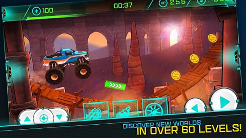 既然这辆酷炫的陆地霸主有四种形态,那一定会有相对这些形态而设计的不同路况。没错,在游戏中我们会遇到诸如障碍、高台等普通状态下无法通过的障碍,这时就必须要通过切换形态来克服他们了。玩家在关卡中变换形态时,视角将会被拉进,然后我们就可以观赏到汽车变形的整个过程,炫丽的形态变换所带来的视觉震撼完全不输给美国大片。