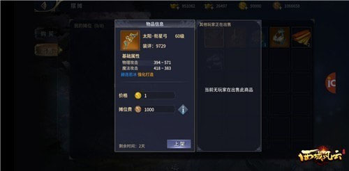 摆摊系统能买东西,自然也能卖东西。如果想要出售某些道具,点击”出售“标签,系统会自动筛选出可以出售的物品,选择即可,每次出售最长时间为48小时。《西域风云》中所有未绑定物品,均可在摆摊系统挂售,系统只收取少量铜币作为摊位费。玩家可以参考市场价格后对道具标价,也可以按自己的心情随意标价,若是不小心遇上一个不差钱的主,你就可以赚个钵满盆满。