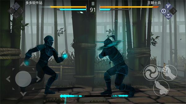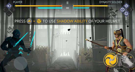 7、暗影格斗3还加入了全新的“魔法”控制能力,我们在战斗的时候,可以点击按钮进入“暗影效果”,在此效果下,背景直接变黑暗,自己也变成了隐藏在黑暗中的杀手。