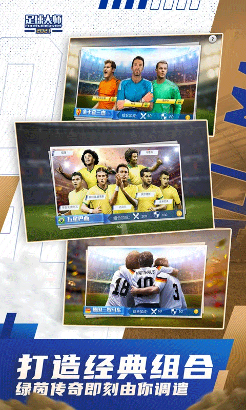 足球大师黄金一代腾讯版是一款非常热血好玩的足球游戏,此版本是由游戏官方和腾讯合作运营的一个版本,支持官方账号、qq账号和账号登录,简单又方便,还能领取腾讯的专属礼包,让玩家更快的上手。游戏拥有数十位活跃足坛的知名球星供您选择,拥有梅西、C罗、齐祖、海布里之王、外星人等众多新老球星。该游戏的可玩度相当之高,玩家可以扮演一名传奇球队教练,你需要通过发掘球星、培养球员、参与世界各地联赛,一步一步打造成世界梦幻球队,最终去赢得欧洲杯。在游戏中你能够遇到各种各样的知名球员,可以享受最火爆的激情足球,运用各种不同的体育竞技,激情四射的足球比赛,和全世界众多的足球明星大腕开启最新对决。足球大师黄金一代游戏有许多有趣的玩法内容等你来发掘,还有丰富的战术选择、生动的比赛过程、真实的豪门主场令您身临其境,一定会给你带来全新不一样的游戏体验,感兴趣的小伙伴快来下载体验吧。