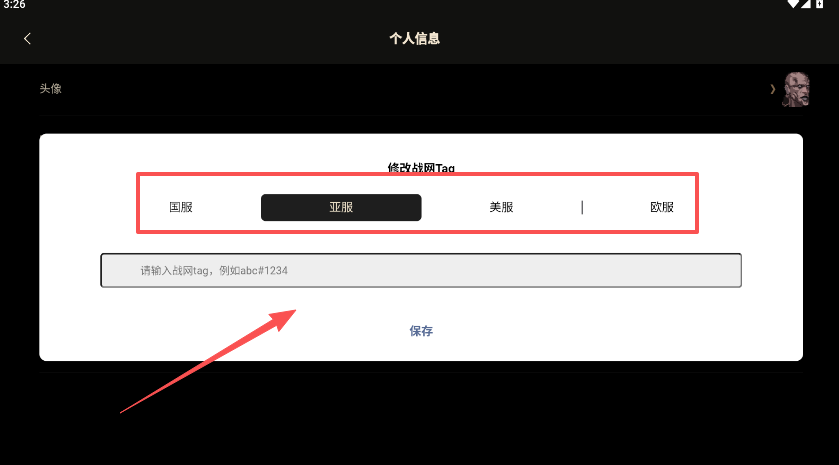 5、从国服、亚服、美服或是欧服中进行选择,完成战网tags的绑定并点击“保存”。