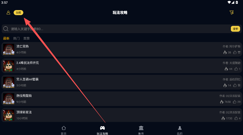 1、登录绑定战网tags以后,点击玩法攻略版块,选中左上方的“投稿”。