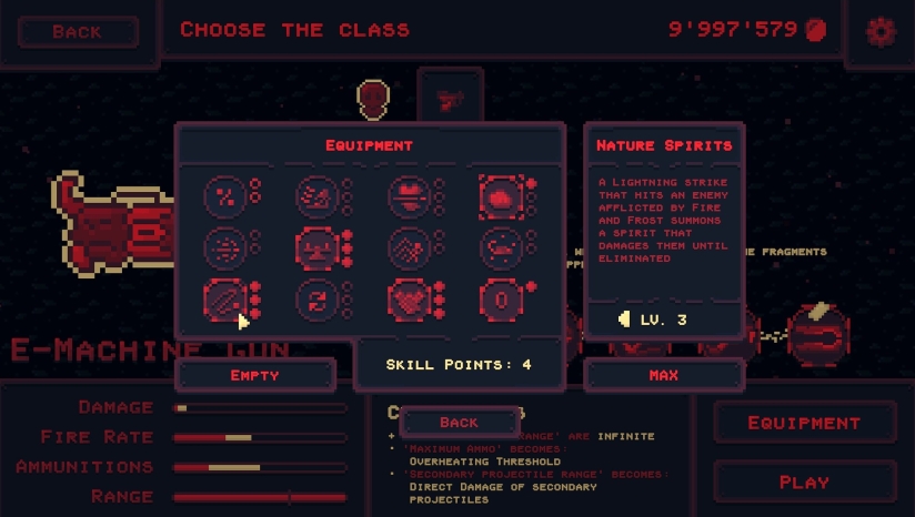 《Echoes of Red》的核心玩法是快节奏的弹幕射击与Roguelite元素结合。玩家可以同时携带最多11把武器,通过消灭敌人来提升武器等级。游戏提供4种不同职业,每种职业配备4种专属武器,适应不同的游戏风格。每局游戏时长约15分钟,包含9个难度等级,从标准难度到“疯狂”、“一击”、“精英连”等高挑战模式。玩家需要收集灵魂解锁新增强,收集碎片升级武器,并通过摧毁地图上的矿石获得属性加成。