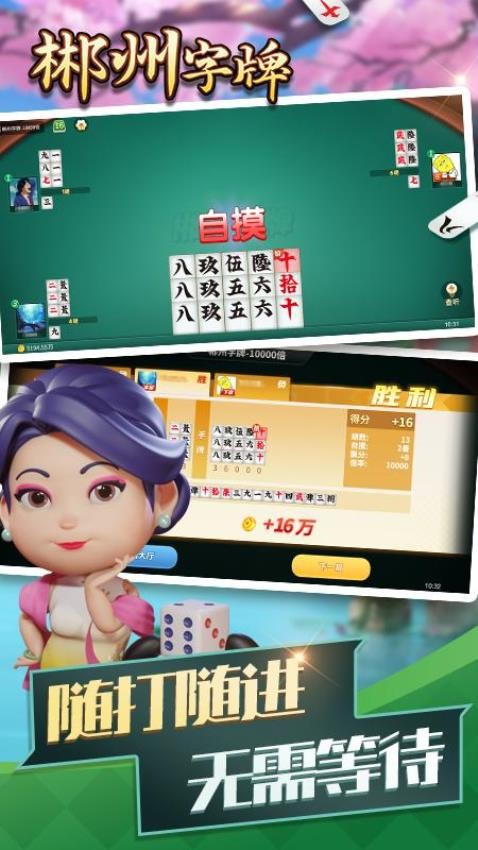 场景化的游戏界面,感受真实的字牌;丰富趣味的互动表情,增添更多欢乐元素!