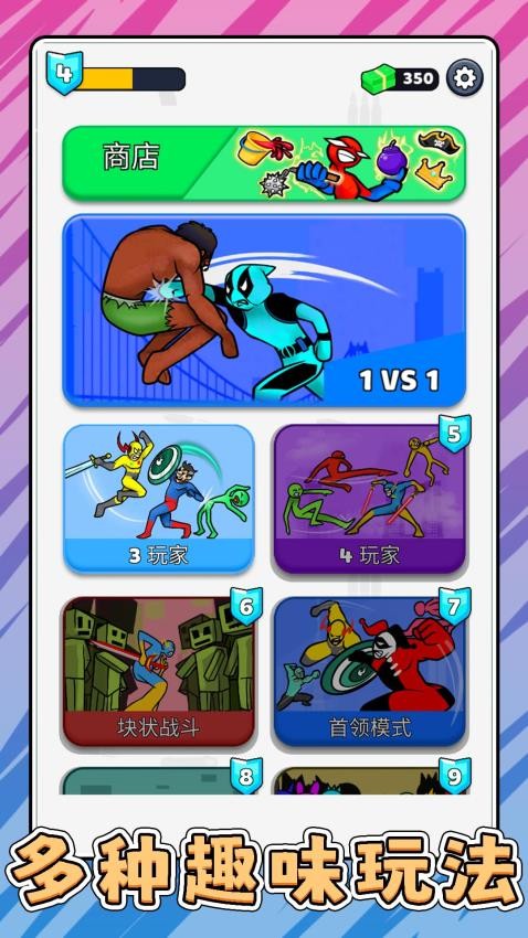玩家可在游戏中解锁不同的对战模式,包括了首领模式、单人对战、块状战斗等等,提升自身等级才能解锁。