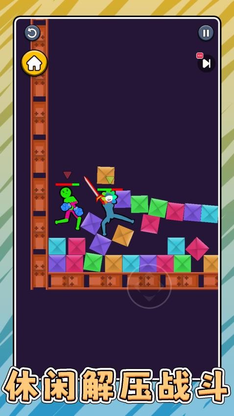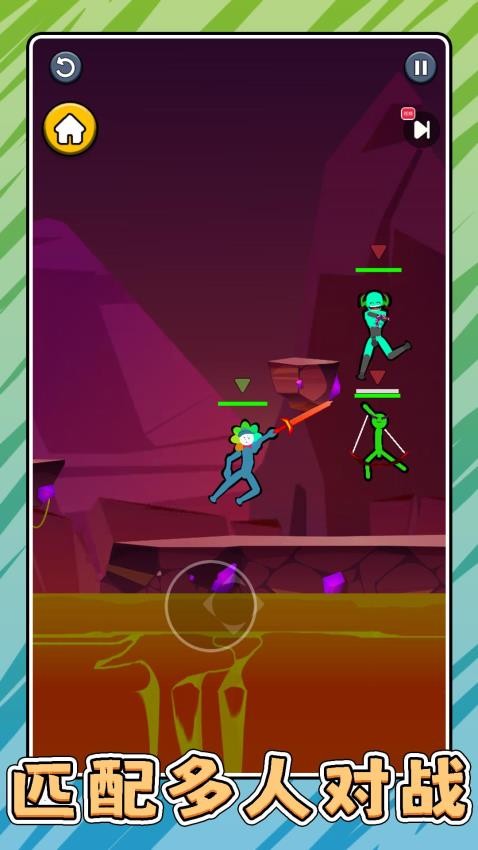 玩家将操控造型独特的火柴人角色,在多样化的场景中展开激烈对决。游戏提供丰富的战斗玩法,包含近身格斗、武器攻击和特殊技能释放等多种对战方式。通过虚拟摇杆操控角色移动,可触发连击技能与对手较量,连击数越高战斗表现越出色。特色系统包含装备收集、血量管理和进度挑战,随着对战胜利还能解锁炫酷特效。