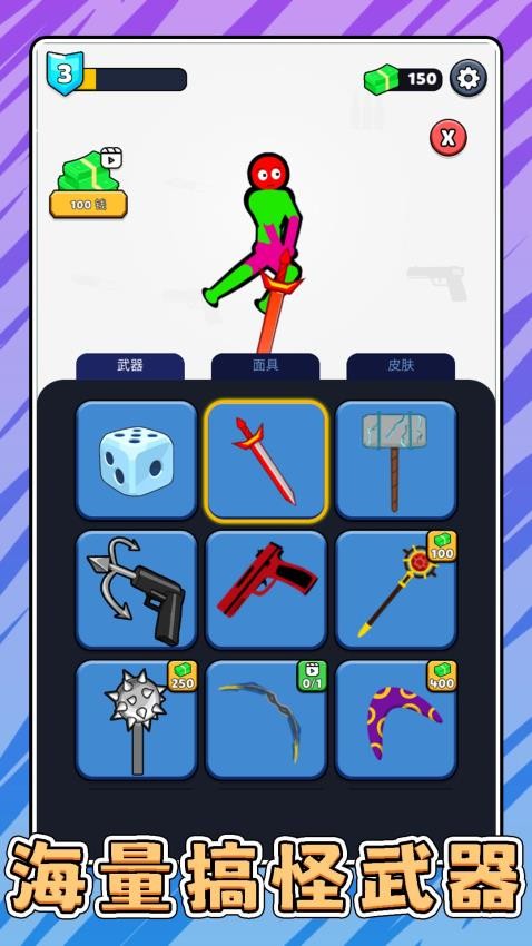 1、在商城里面你可购买武器、面具、皮肤这些不同的物品,能够得到不一样的挑战效果。
