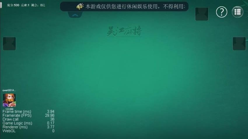 3、可以显示四个玩家,可以查看玩家信息,可以查看出牌的信息,牌桌在中间区域显示。