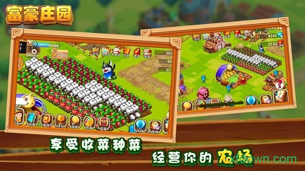 富豪庄园是一款充满乐趣的休闲农场模拟手游,玩家将在游戏中经营自己的农场,体验种植农作物、饲养动物等多种玩法,通过努力将农场发展壮大。精美的画质和好友互动偷菜等趣味元素,让游戏更加丰富多彩。快来加入这场农场经营之旅吧!