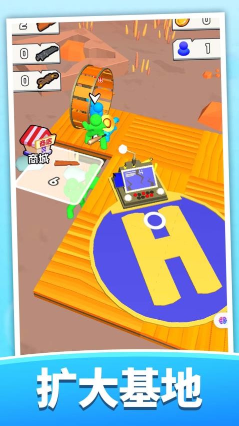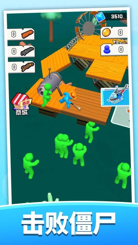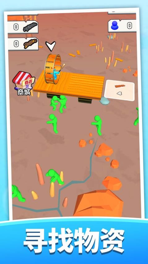 靠近地面闪烁的木条并点击收集,当集齐3根后会自动组合成简易木筏,组装完成的音效提示着求生之路的开始。