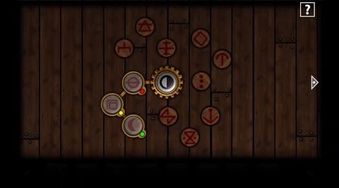 左转,点卧室门右边的转盘根据提示转到只有黑色,绿色,星星和月亮