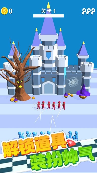 在这场疯狂的生存竞速中,你能跑多远?面对摇摆的巨斧、滚动的粉碎球、高速旋转的圆锯,还有致命的红色按钮和布满尖刺的深渊,只有最敏捷的跑者才能抵达终点。沿途收集同伴壮大队伍,最终在城堡决战中击败对手,赢得胜利!