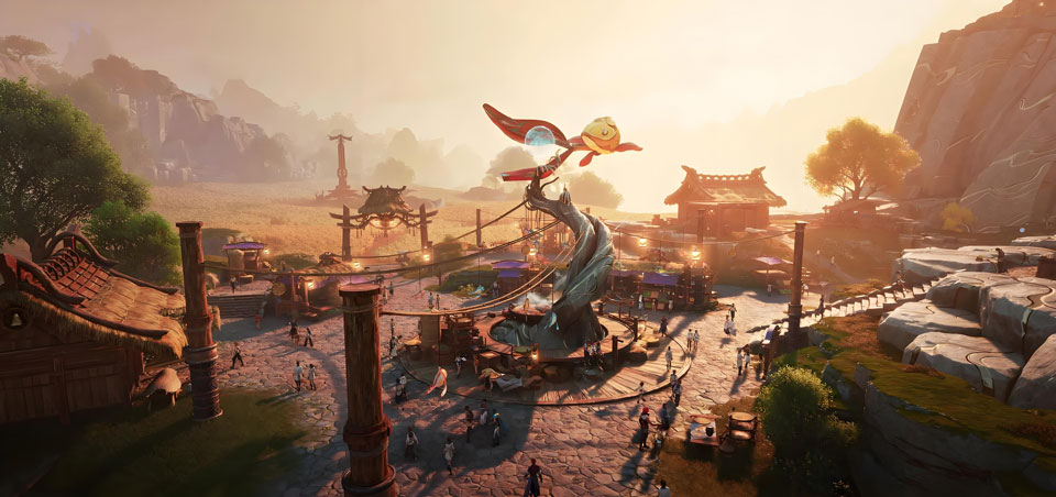 画面表现力出色,充满东方幻想元素,采用Nanite虚拟化微多边形几何体与Lumen全动态全局光照系统,实现高精度模型实时渲染与自然光影演算,场景细节(如建筑结构、植被层次、天气变化)具备电影级物理反馈,支持HDR高动态范围显示与自适应分辨率缩放。