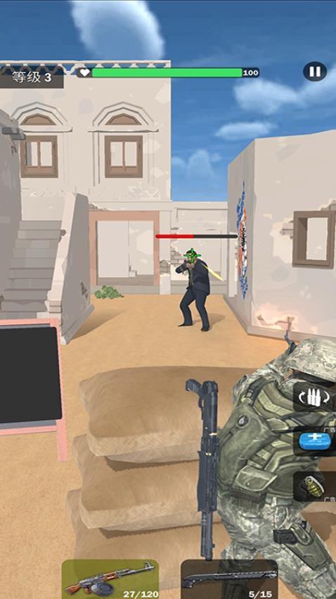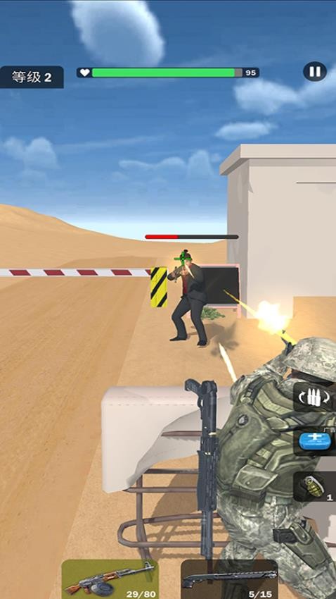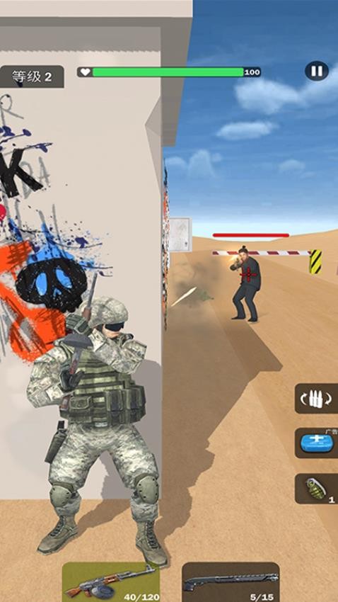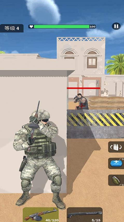精英部队战争手游官网版是一款紧张刺激的射击生存类游戏。游戏中玩家将化身成为特种士兵进入战场展开激烈刺激的对抗,灵活操控角色解决面前的所有敌人完成最终挑战,集中精力进行操作即可提高胜率,并不会出现过于复杂的操作,各种掩体也能随意点击躲藏,进入掩体进行躲避即可保证自身的安全状态,还可以更好地观察周围环境状况,并不会出现过多阻碍。战场环境不断变化,随着关卡推进会出现完全不同的场景信息,查看基本环境制定全新作战计划才有机会取得胜利,这会特别考验自身的枪法技术和反应力。