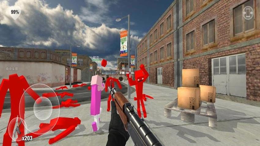 1、操控射击:借助虚拟按键或手势来操作,控制橡皮人角色完成移动与射击动作,瞄准持续出现的僵尸发起攻击,通过消灭僵尸来保护自身和百姓。