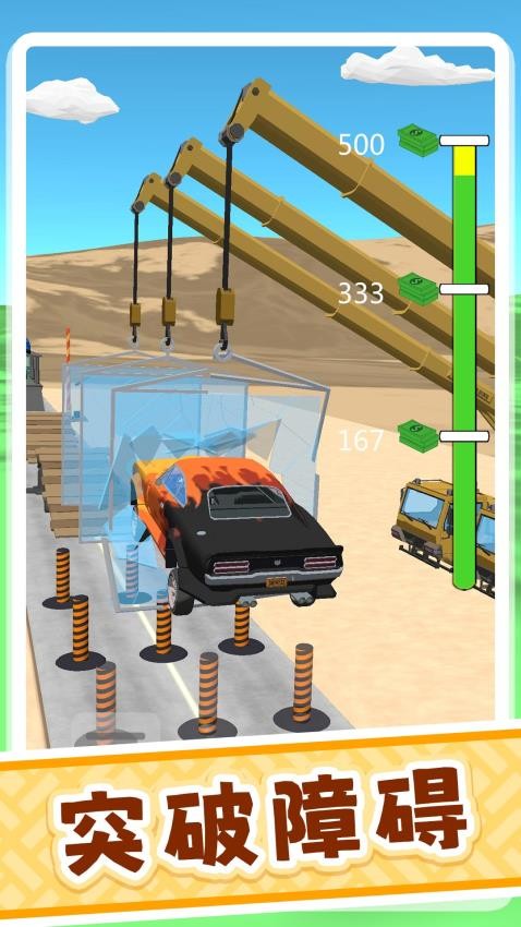 1、多种独特的道路装置逐渐解锁,如移动跳台、断层加速带、无护栏飞跃点等等,精准操控车辆才能顺利通过。