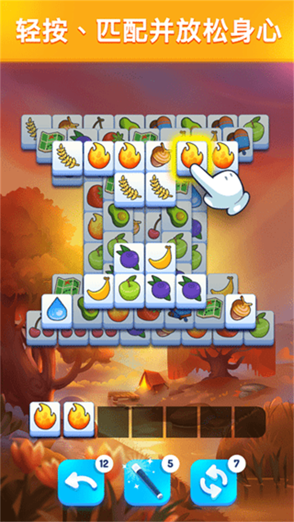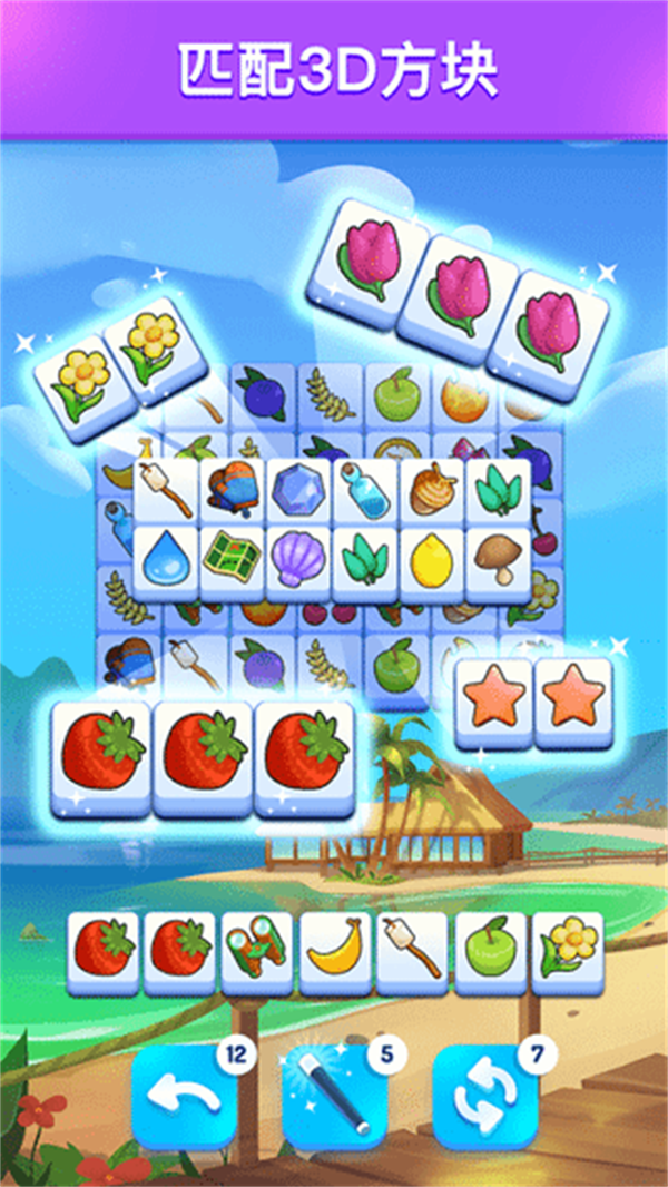 1、只需轻点一下即可将方块堆积起来。三个相同的方块即可配对。