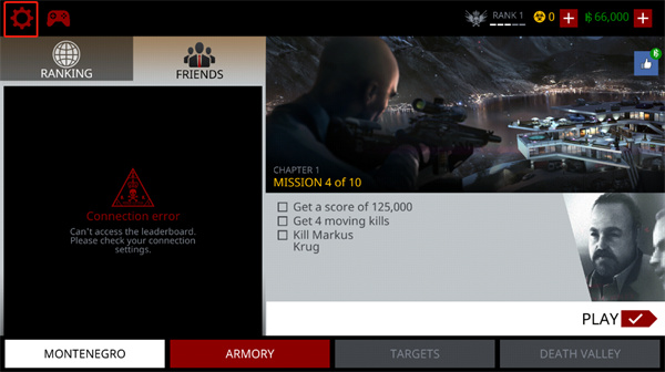 1、打开代号47狙击,点击左上角的齿轮按钮;
