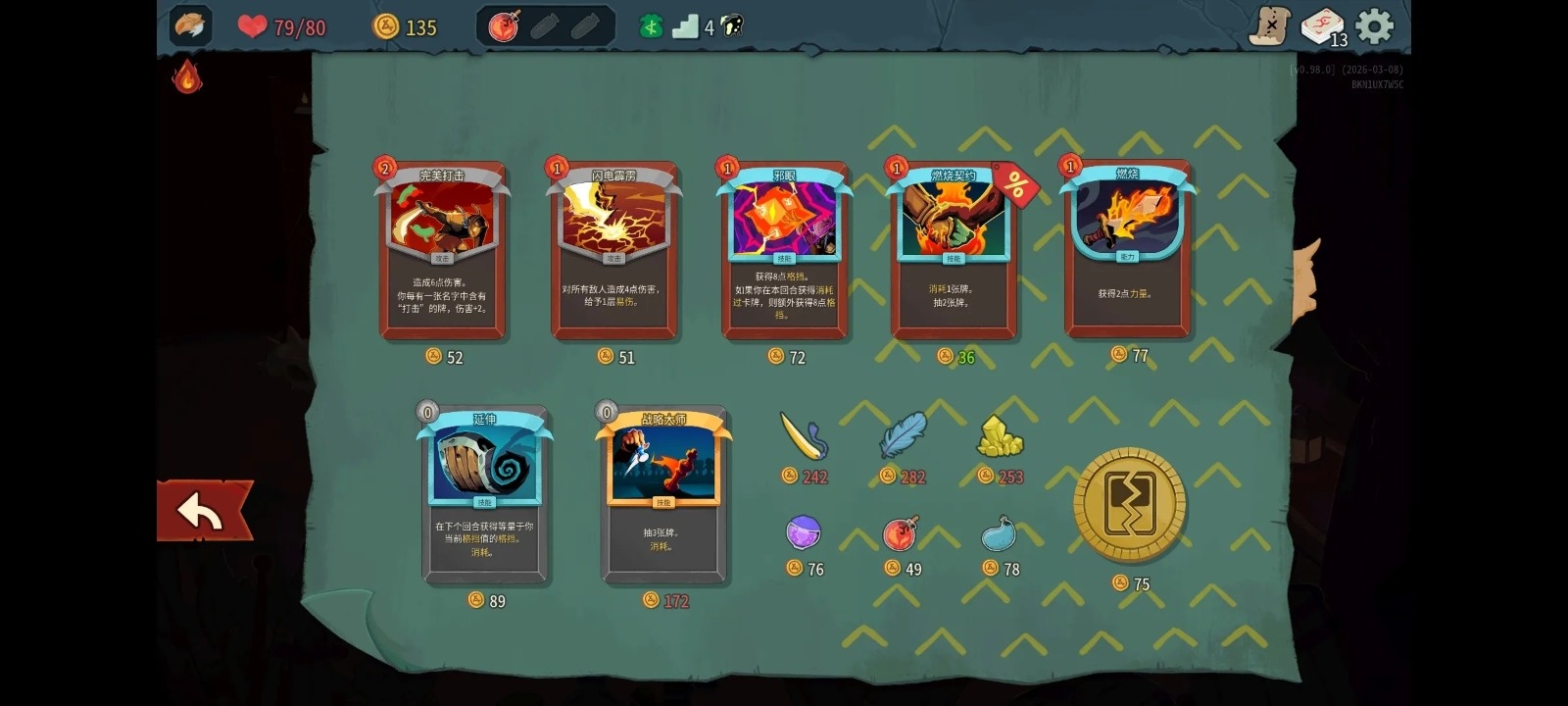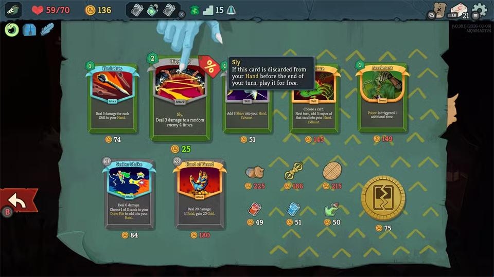 沉默流在游戏前期稍显吃力,因为她需要抽取大量卡牌才能在单回合打出爆发性伤害。因此初期遭遇战时,你可能需要采取保守策略,避免承受过多伤害。这也意味着在地图探索时需频繁交战——通过战斗获取卡牌能加速她的滚雪球式爆发。