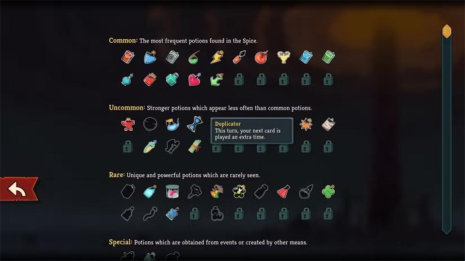 至于稀有药水,建议重点关注:束缚药水、赌徒之酿、复制者和强化剂。束缚药水与弱化药水类似,能同时对大量敌人施加减益效果;当牌组中存在大量狡诈卡牌时,赌徒药水能产生意想不到的效果。复制者对任何角色都极具价值,而强化剂在缺乏大量阻挡卡牌时能显著提升生存能力。