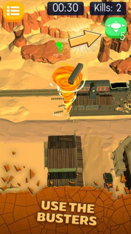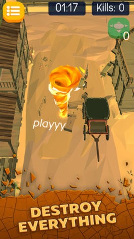 玩家需要善于操控龙卷风的加速技能,实现更多的变相走位,躲避一些障碍物,同时也要不断的破坏城市的建筑,达到升级的要求,变成巨大龙卷风。