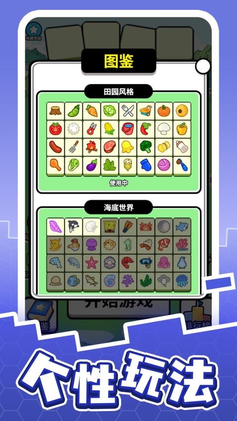 2、随机分布的果蔬方块注意观察,查看所有方块分布情况制定全新消除计划,成功实现连消才有机会推进闯关。