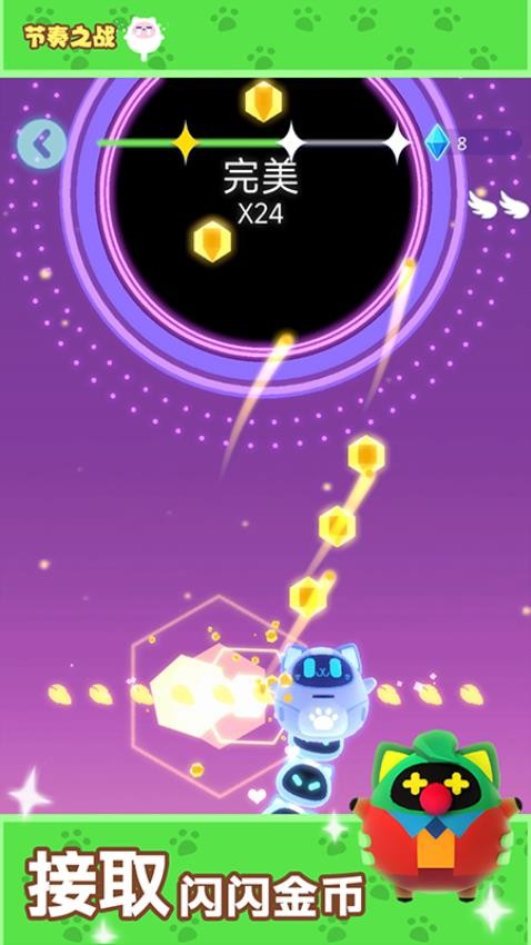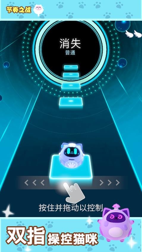 节奏之战是一款非常有趣的音乐闯关游戏。在这个音乐跑酷玩法中,玩家能够见到许多华丽的场景类型,同时也能收获更为惊奇的视觉体验,快速发现有关的要点,找到适合的方式来突破,即可很快地到达终点。这些音乐关卡的布局拥有不同的难度,只需熟练掌握相应的操作技巧,就会得到最好的成绩,你还需充分结合有关的道路变化情况,尽快地点击便可移动,尽量完美落在相应的音符元素上,即可获得最高分数。萌宠猫咪将会成为你的主角,操控它完成每个关卡的挑战。如果你也对这款游戏感兴趣的话,不妨来体验一下吧!