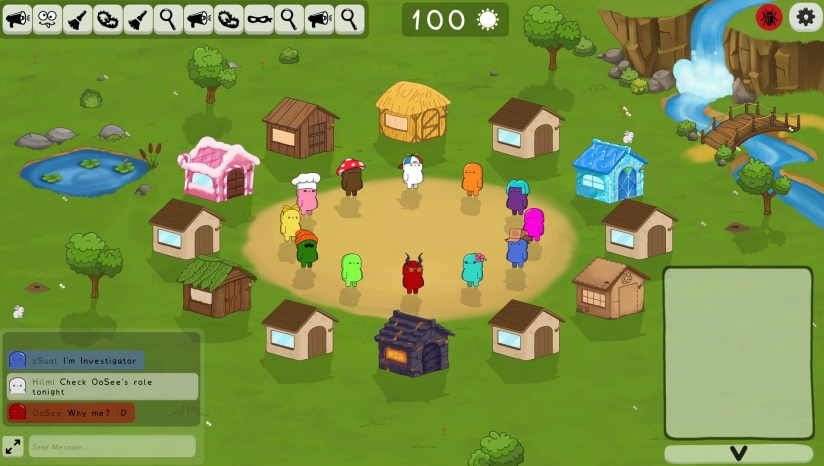《Feign》是一款最多支持12名玩家联机的角色扮演游戏,故事发生在一个充满谜团的小镇。这个小镇聚集了三个主要阵营:无辜者(绿色阵营)、冒名顶替者(红色阵营)和中立者(蓝色阵营)。游戏构建了一个充满怀疑与策略的社交环境,玩家需要在这个微妙的平衡世界中寻找自己的立足点。