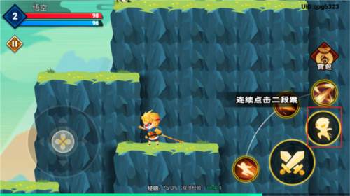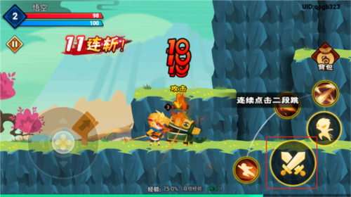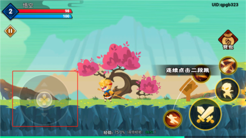 5、游戏右下角还有一个跳跃按钮,连续点击即可进行二段跳;