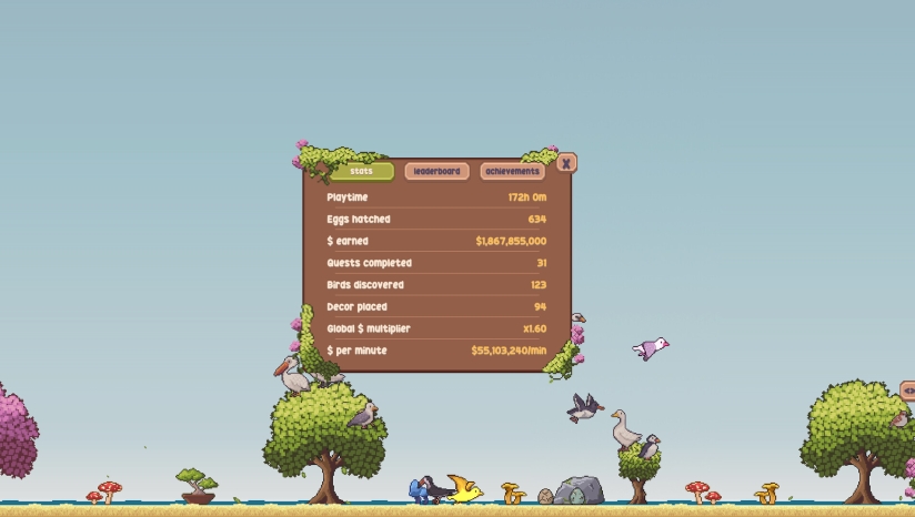 游戏的核心玩法围绕小鸟的孵化、收集与鸟舍的装饰展开。玩家可以孵化超过50种形态各异、羽色缤纷的鸟儿,每种鸟类还可能存在独特的颜色变种,满足玩家的收集欲望。通过用各种装饰品自定义鸟舍,玩家能为这些屏幕上的小住客提供一个更舒适美丽的家。游戏采用放置挂机机制,玩家可以孵化独特的鸟儿,将它们出售,进行装饰,然后看着它们在屏幕上飞翔并栖息在其他窗口之上。玩家还可以通过繁殖珍稀鸟儿来获得更多收益,并解锁如海滩等新区域,这些区域能为特定类型的鸟儿提供加成。
