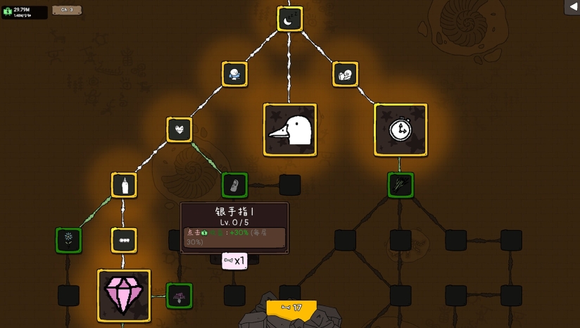游戏的核心玩法是在鹅树上自由摆放各种装置,构建一条高效的“撞击流水线”。玩家需要从鹅嘴里获取鹅宝,通过精妙的布局,让鹅宝在装置间碰撞跌落,每次撞击都会产生收益。玩家可以合成三个低级鹅宝形成更高级的心心鹅,从而提升产值。随着关卡推进,玩家可获得骨头资源,用于点亮局外成长的“巨根天赋系统”,解锁更深层的自动化能力。游戏包含了轻策略、挂机放置及流水线构筑元素,玩家既需动脑优化布局,也可静观系统自动运行。