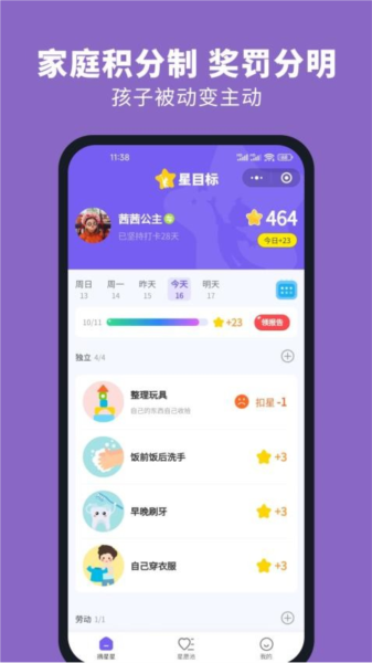 2、习惯自律: 通过任务和奖励机制,帮助孩子养成良好的生活和学习习惯,树立健康的品格。