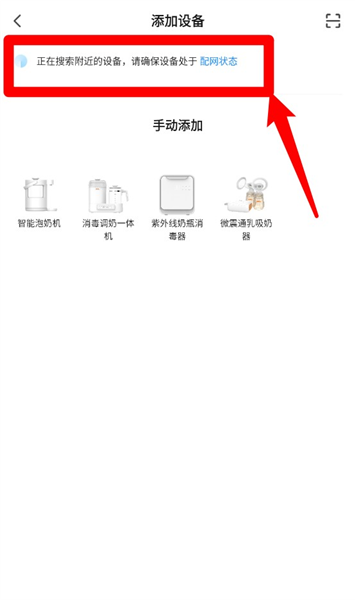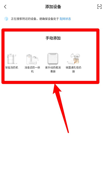 5、如未自动识别设备,可在下方手动添加区选择具体型号,手动绑定智能奶瓶消毒器等设备。