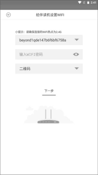 3、下面就是给伴读机设置WiFi密码,输入密码进入下一步。