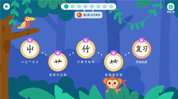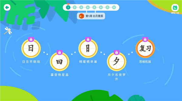 2、按照自然、植物等主题进行汉字分类学习,以情景融入的方式带入课程,学习趣味国学知识;
