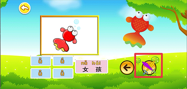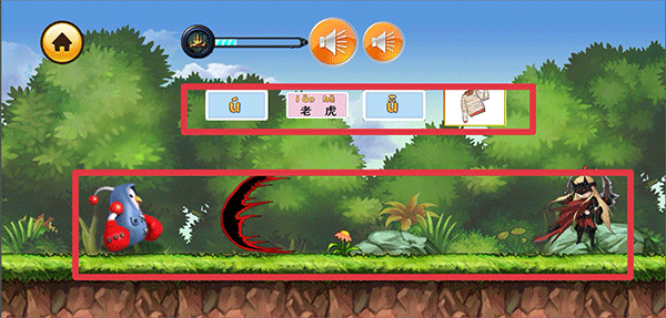 4、根据语音在下方卡片中点击正确的拼音卡片,回答正确后右边的人物就会击打怪物一次