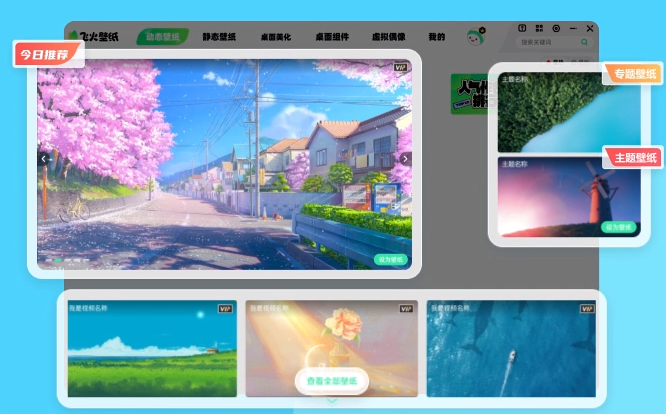 1.特色壁纸:个性推荐、桌面美化、交互壁纸。