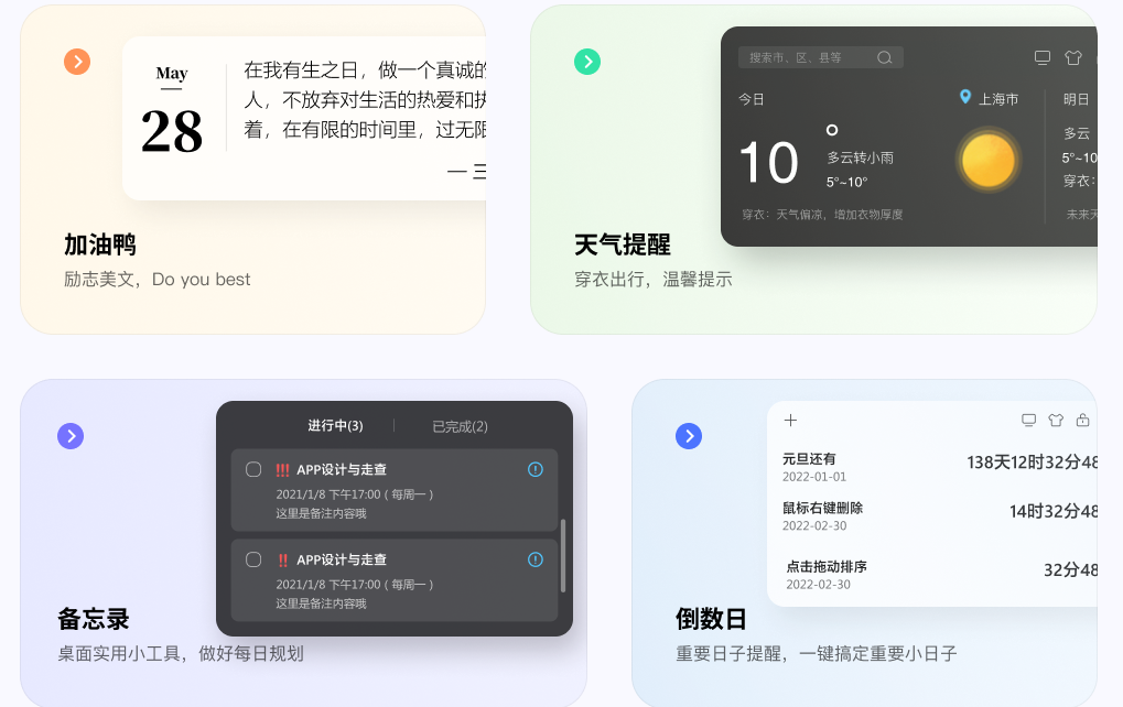 2.桌面组件:智能桌面,是工作生活的好帮手。