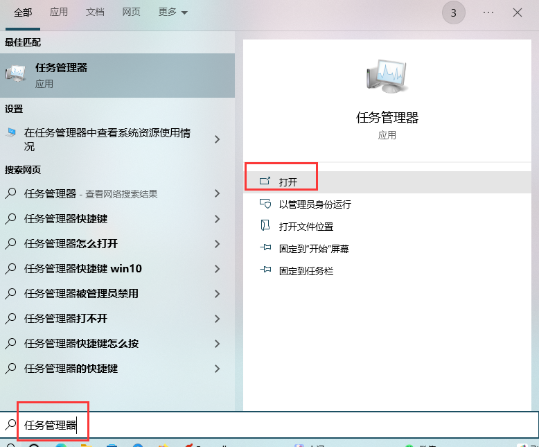 1.在windows搜索框中搜索“任务管理器”并打开。