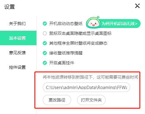 1.打开设置页面打开飞火动态壁纸,点击设置按钮。