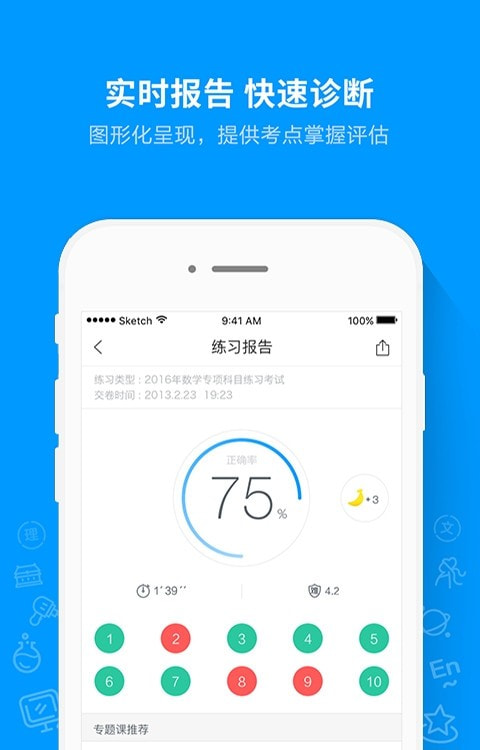 知识能力检测,对每个知识点掌握情况进行准确评估,了解自己的不足。