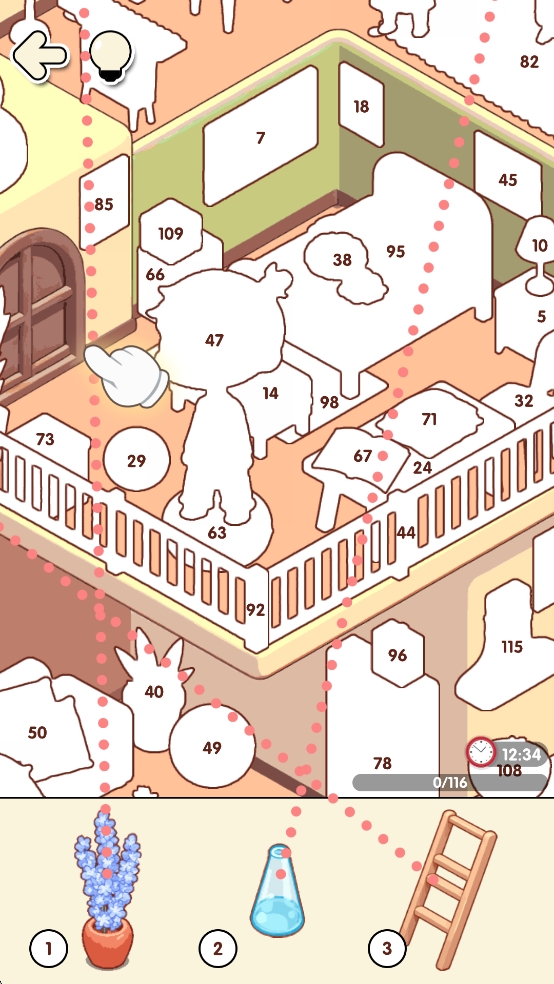 4、关卡丰富不重复:提供数十个不同主题的房间场景,从卧室到花园应有尽有,保持新鲜感。