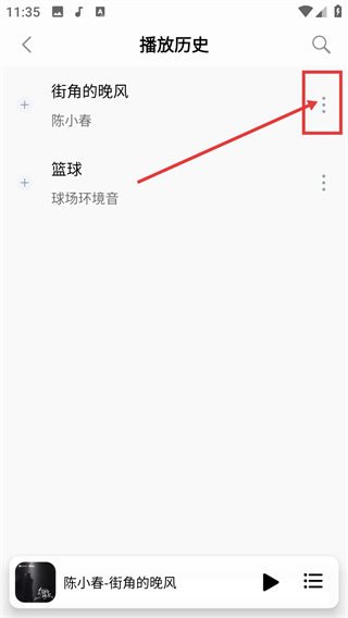 3、在播放历史页点击目标歌曲右侧的三点按钮,就能展开操作菜单,进行删除等操作啦。