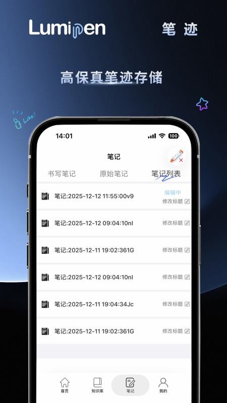Lumipen软件方便了用户日常做笔记的方式,真正体验到智能化的书写模式,还能感受纸质版的做笔记服务,保存笔记信息更加有趣,留存真实的笔迹内容,随时都能清晰阅览;同时可以帮助你解决诸多难题,解决遇到的各种麻烦,帮助你做笔记和功能做更加畅快!
