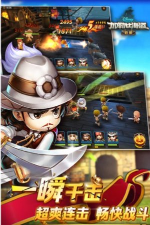 3、奥义连携系统:每位船长拥有专属终极技能,杰克"醉拳乱射"与戴维·琼斯"深渊触手"可形成组合技清场。