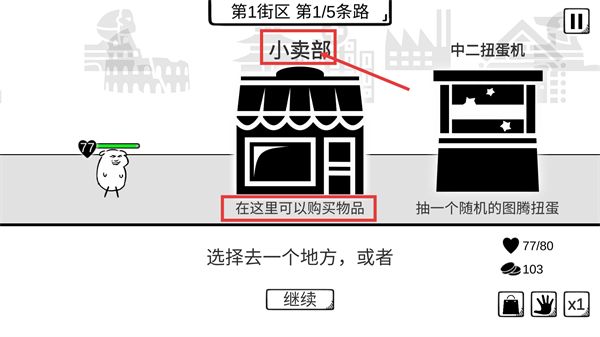 1、处于【第1街区-第1/5条路】时,可前往【小卖部】,这里支持购买物品,能助力提升自身的战斗防御或输出属性。