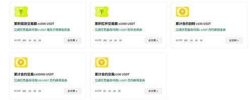 合约交易100000 USDT:完成任务最高可得100 USDT合约体验金券。