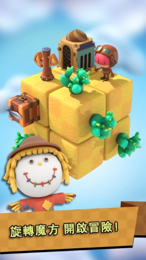 1、玩法人趣新颖:核心为魔方旋转驱动闯关,操控Q版角色在立方体世界冒险,兼具空间解谜的巧思与闯关的成就感。