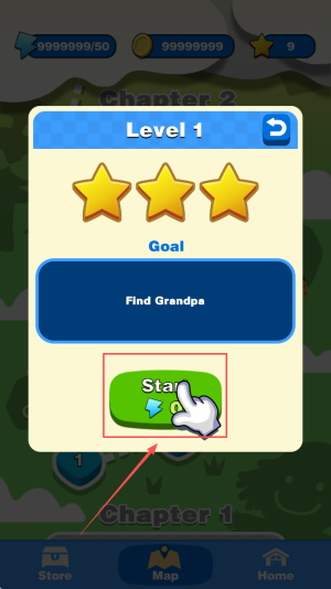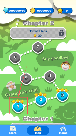 2、选择关卡:在地图界面点击“Chapter 1”,进入关卡列表,选择“Level 1”目标“Find Grandpa”。