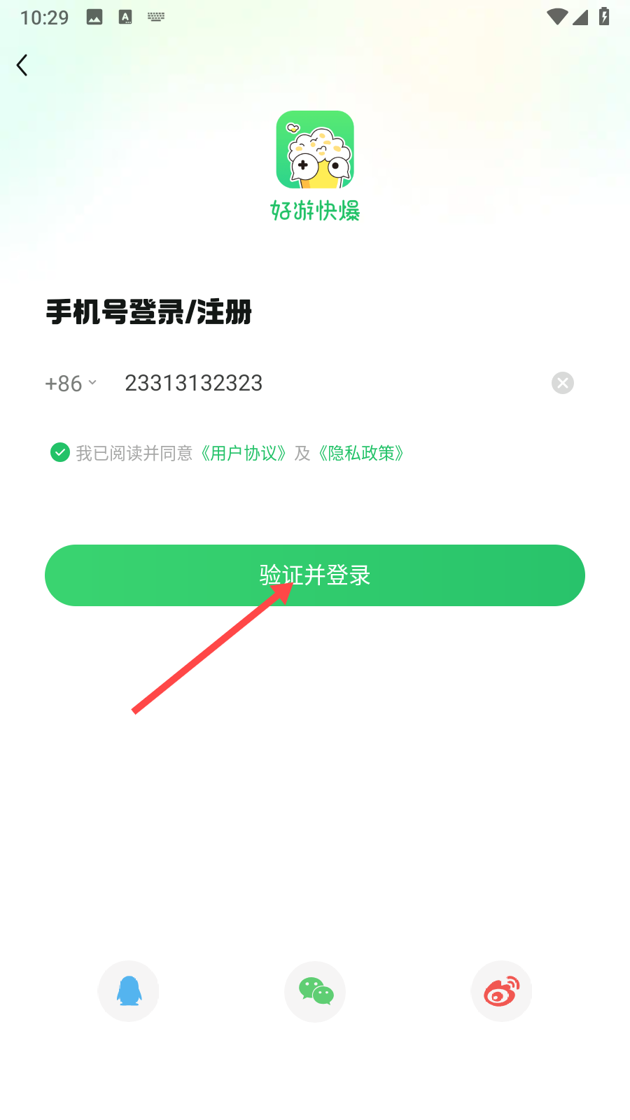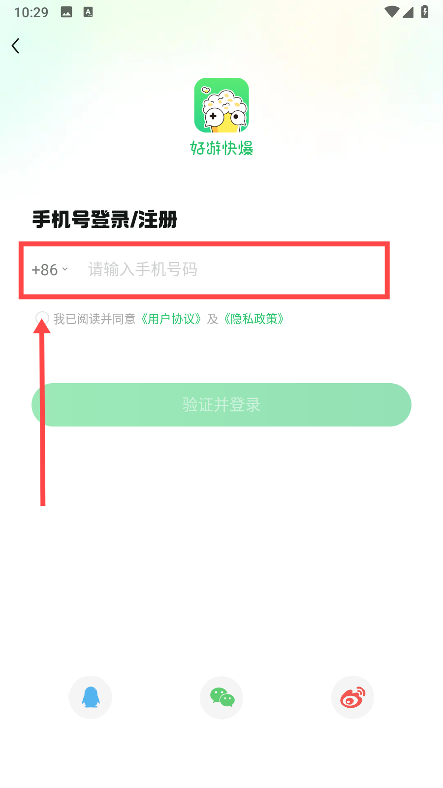 2、输入电话号码,勾选同意用户协议。